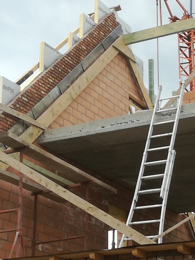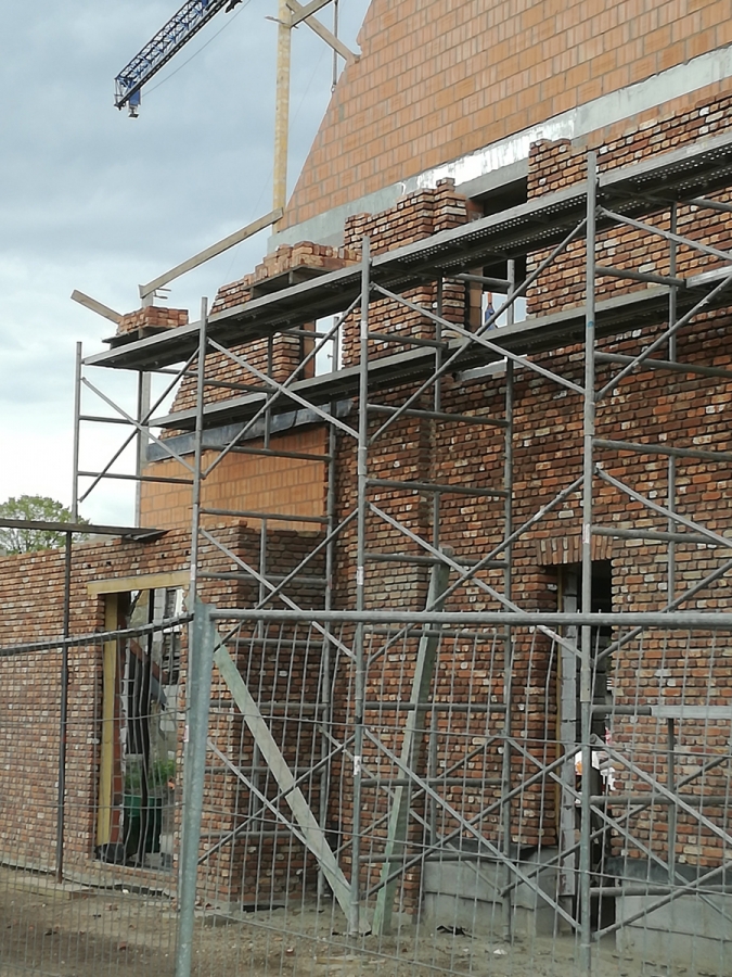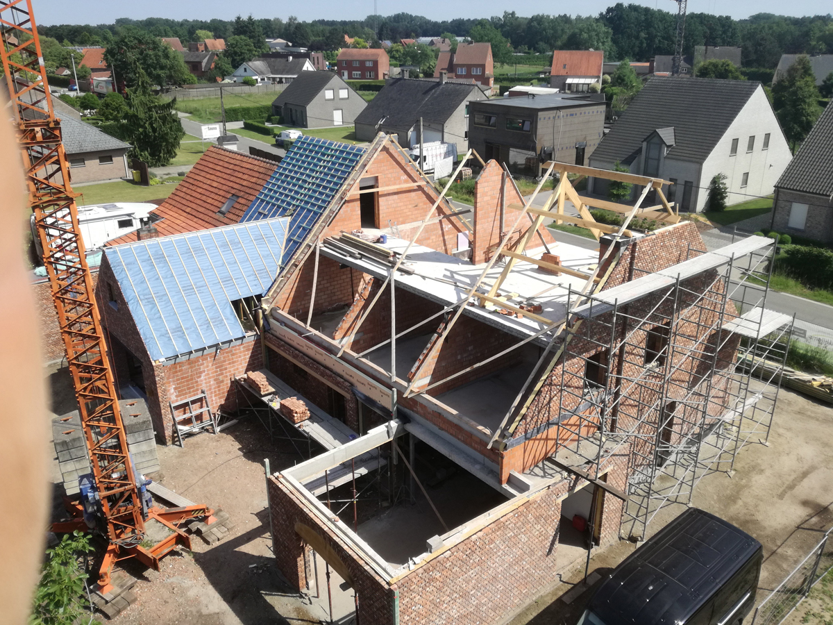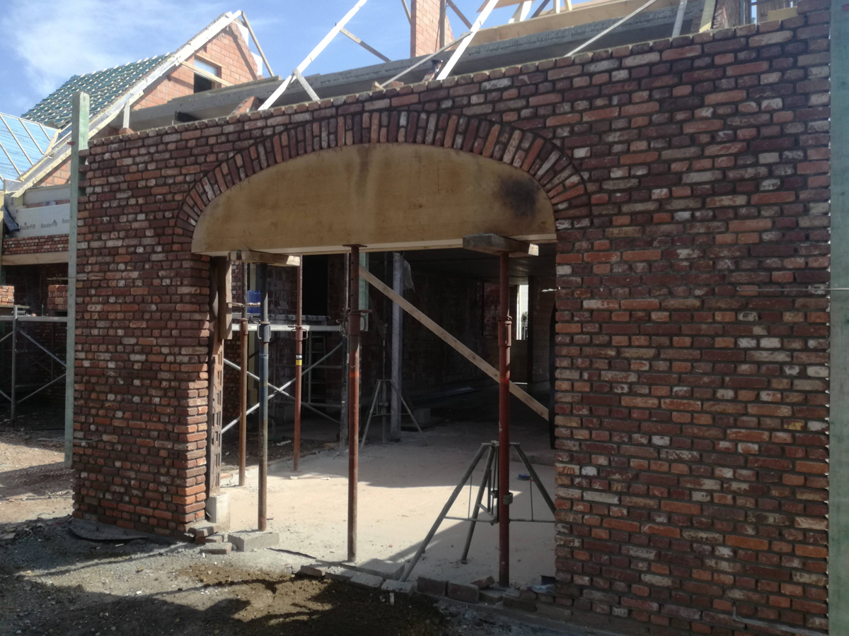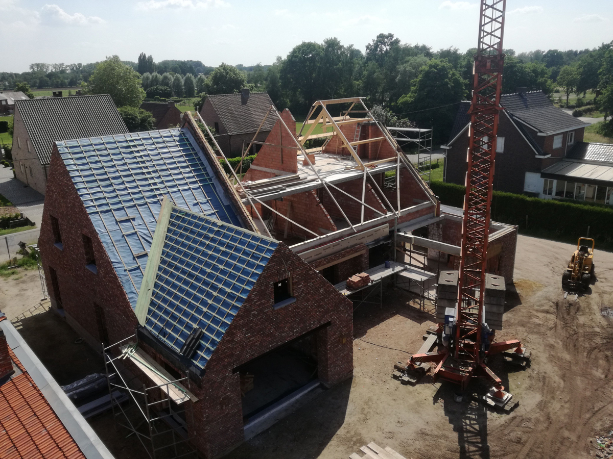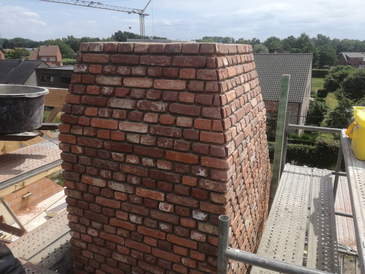 Let ook op de schouw met toelopende schouwopening. Deze techniek uit vervlogen tijden is hedendaags weer veelgebruikt en maakt dat het huis een stevige maar toch verfijnde uitstraling krijgt. De steen is gemetst in kruisverband, dit is een metsverband waarin bijna alle vroegere woningen gebouwd werden. Door de combinatie van de rustieke steen, de stoere arduin en de houttoetsen bekom je een prachtig resultaat.
