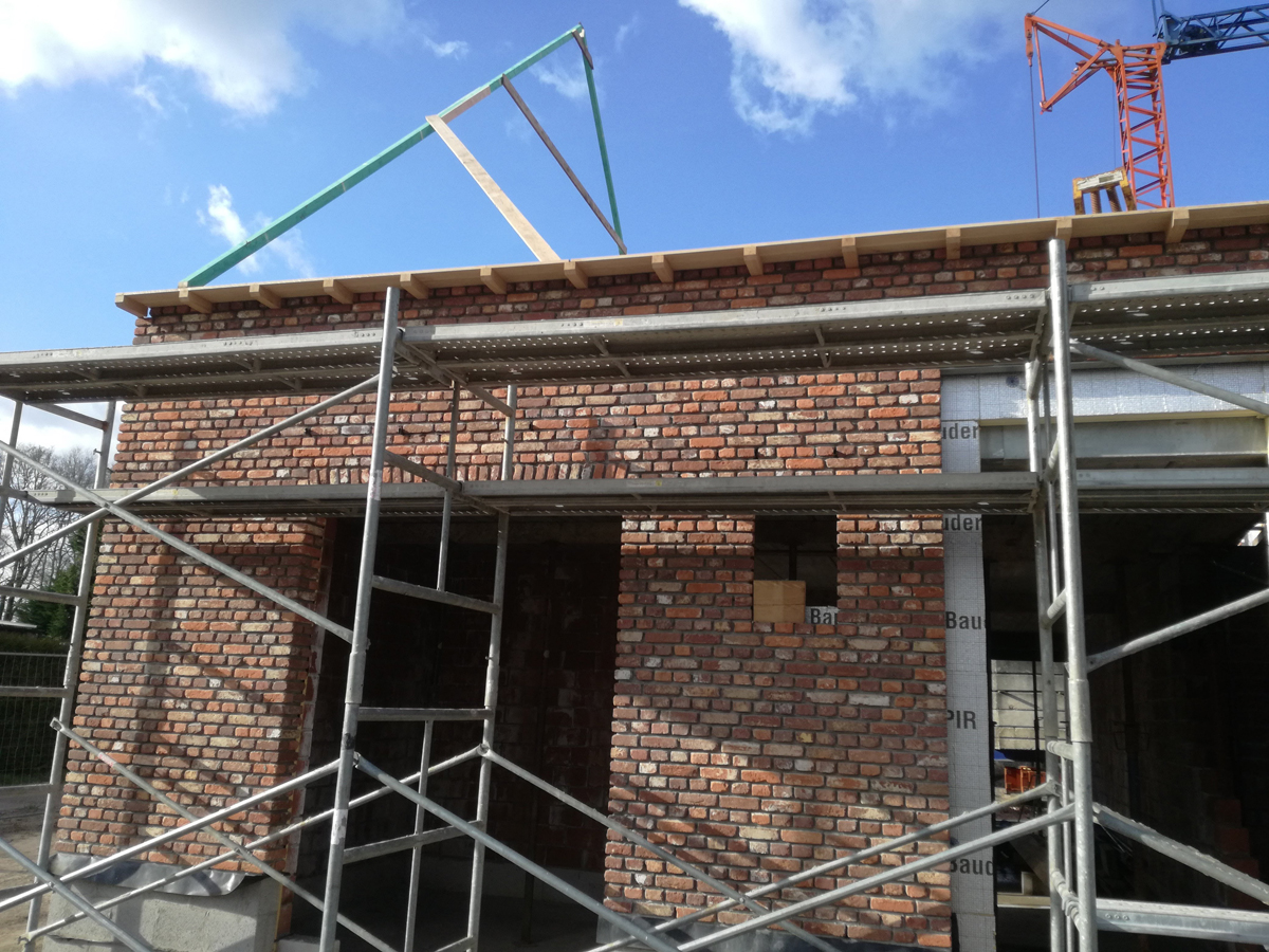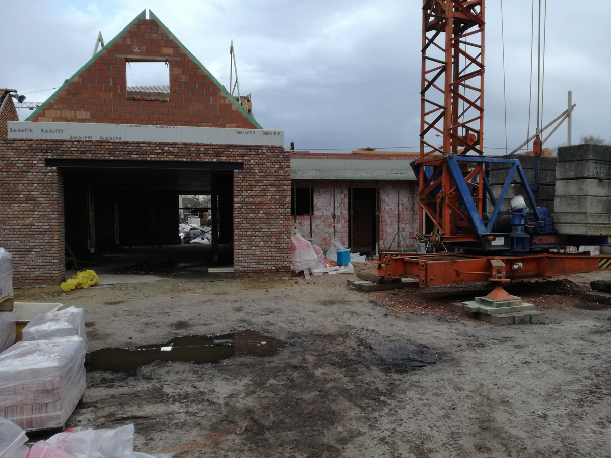 Deze moderne langegevelwoning werd opgericht als deels woning, deels kinderdagverblijf. De look werd een mooie, moderne boerderij met zowel ambachtelijke als moderne elementen. De steen werd dan ook gekozen voor zijn authentieke uitstraling en in combinatie met de grijze voegwerken lijkt het of deze woning hier altijd al gestaan heeft.